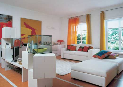 現(xiàn)今,有很多戶型不大、空間卻夠大的居室,如果曾感到對過于通透的空間無從下手,請借鑒以下的空間構造法?! ≡诠潭ㄐ螤畹目臻g里,可以使用自由拆分組合的家具或隔斷,將一個空間分化成幾個空間,把想藏的藏起來,平時居住時是一種樣子,有客來時又可以變換另外一種面貌,非常方便。要知道,只要你愿意,家,就可以總是在變化當中,充滿彈性和活力。