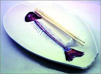 吃飯時除了享用美食外,視覺的享受也是必不可少的。這是一款用來盛放魚的盤子,盤中央畫著魚骨頭,畫面很逼真,好像一條大魚肉被吃干凈后,只剩下骨頭了。端上一條紅燒魚,吃到最后時發(fā)現(xiàn)可愛的魚骨頭躺在盤底,肯定讓人忍俊不禁。盤子的尾部還能拆卸下來,成為筷架