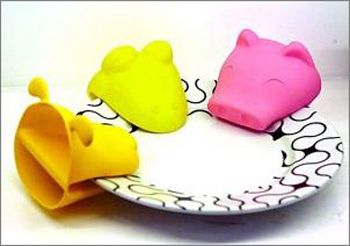 這款隔熱手套由特殊的防燙材料制作而成。黃色的、粉色的被制作成河馬、青蛙,異??蓯?。用這樣的隔熱手套從微波爐里拿出熱乎乎的美食,用餐過程也充滿童趣。