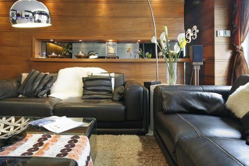 客廳后面:木質(zhì)背景墻突出了空間的貴氣,同時兼做展示柜給了主人更多凸顯品味的空間。