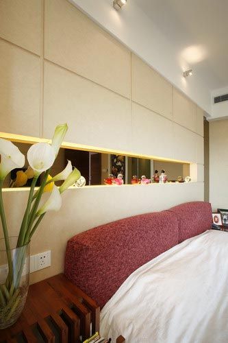 主臥:展示墻倒映出空間美景,幾株綠植點綴出主人的淡雅情操。