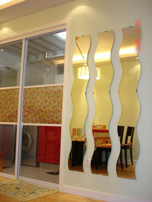 一些儲(chǔ)物柜的設(shè)計(jì),為了美觀,往往在柜的內(nèi)壁加裝鏡子,造成家中出現(xiàn)許多暗鏡,要金的話尚可,否則會(huì)成不利。假如大廳內(nèi)有很多鏡,晚上經(jīng)過(guò)時(shí),鏡的反射,令眼前出現(xiàn)許多陰影,會(huì)令人心情和心理上感到不安,心神恍惚,變相造成影響。因此鏡子要小心處理,尤其大廳的鏡子不能反射到廚房的灶位,否則一灶變兩灶,家庭中馬上出現(xiàn)第三者,罪魁禍?zhǔn)?,便是一塊鏡子!