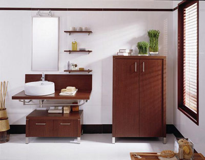 浴室家具區(qū)別于普通的收納柜,它利用科學(xué)、合理的人性化設(shè)計,將洗臉盆、儲物柜、浴室鏡、鏡前燈等多個部位合為一體,使衛(wèi)浴潔具與室內(nèi)家具合二為一,在最小的浴室空間里取得最佳的實用效果。
