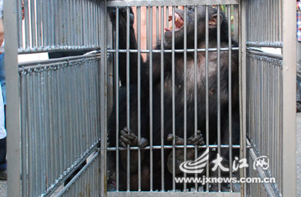 南昌動(dòng)物園的野生黑猩猩“壯壯”。