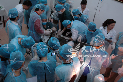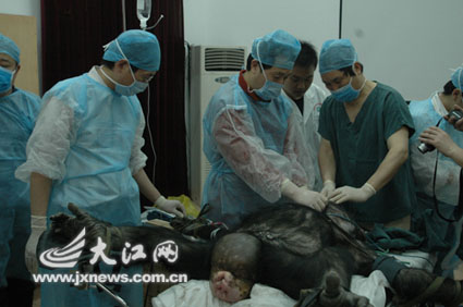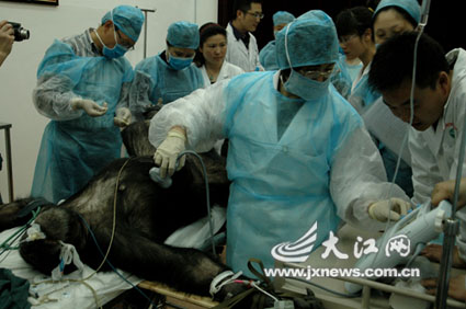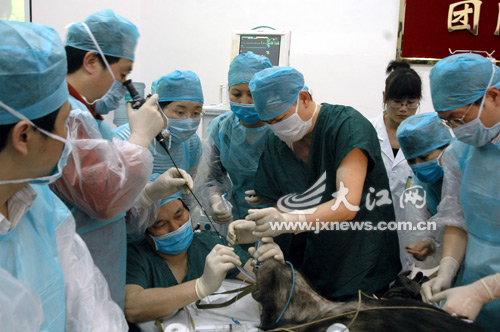 醫(yī)生圍著手術(shù)臺(tái)上的“壯壯”。