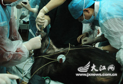 “壯壯”被麻醉后臺(tái)上手術(shù)臺(tái)