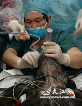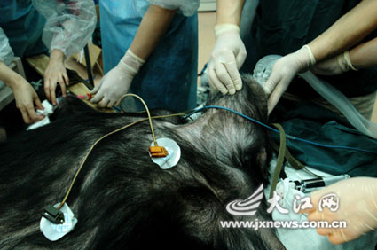 昌大一附醫(yī)院副院長(zhǎng)王共先告訴記者,由于黑猩猩與人的構(gòu)造不一樣,給手術(shù)帶來(lái)了一定的麻煩。如插入輸精管時(shí),剛一**去,卻發(fā)現(xiàn)不對(duì),是尿道,不是**;還有,輸精管開(kāi)始是按人用的長(zhǎng)度標(biāo)準(zhǔn)使用的,后來(lái)發(fā)現(xiàn)短了。不過(guò),這些小麻煩都被一一解決了。