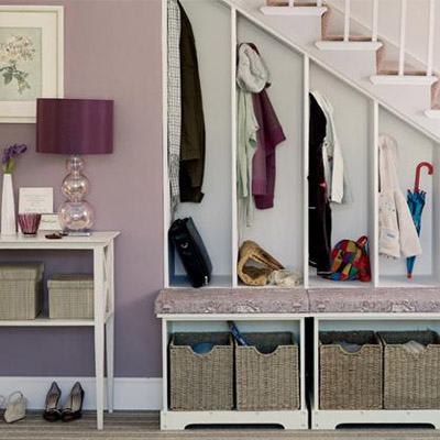 不要浪費樓梯底下的空間哦~給家里的每個人在這里布置一個小隔間,可以掛上自己的衣服,或者存放些個人的小物品。樓梯的層次高度正好合適分別放孩子和大人的衣服,而且高度孩子們也都夠的著。