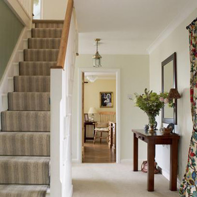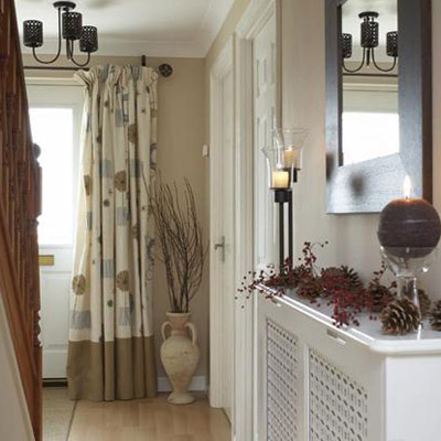 這個走廊也許沒有太多的個性,有點中性化,但是細節(jié)的設計卻是獨具匠心的。門廳的盡頭掛一款舊織物窗簾,和褐色的墻壁和白色的柜子完美搭配。