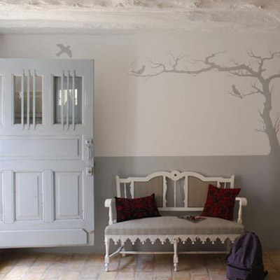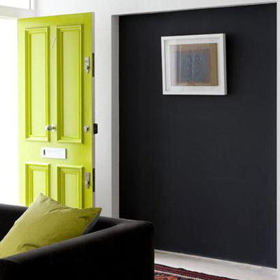 把門粉刷成高雅的酸橙色,讓房間不至于顯得那么擁擠。這個門廳十分的適合搭配現(xiàn)代起居室,黑色的墻壁和沙發(fā)時尚非凡。地上的古典風格的地毯,配上這些現(xiàn)代元素的家具,風格更加的耐人尋味。