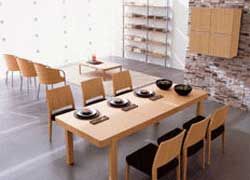 明亮的自然木色成為家具永恒的主題,它既是環(huán)保的象征,又使家里充滿了自然氣息,它可以供6人同時進(jìn)餐。餐桌、餐椅材料的統(tǒng)一,成為這款餐桌的特點(diǎn)。