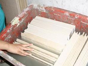 (3)按定位線的位置鋪貼瓷磚。用1:2的水泥砂漿攤在瓷磚背面上,再將瓷磚與地面鋪貼,并用橡皮錘敲擊瓷磚面,使其與地面壓實(shí),并且高度與地面標(biāo)高線吻合。鋪貼8塊以上時(shí)應(yīng)用水平尺檢查平整度,對(duì)高的部分用橡皮錘敲平,低的部分應(yīng)起出瓷磚后用水泥漿墊高。瓷磚的鋪貼程序,對(duì)于小房間來說(面積小于40平方米),通常是做T字形標(biāo)準(zhǔn)高度面。對(duì)于房間面積較大時(shí)通常按在房間中心十字形做出標(biāo)準(zhǔn)高度面,這樣可便于多人同時(shí)施工。