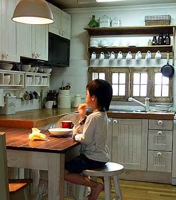 此外,吧臺(tái)或上下吊柜也都具有收納功能,一般吧臺(tái)可兼做早餐臺(tái),高度以85公分最佳,用一般座椅即可,此吧臺(tái)還可當(dāng)工作臺(tái)使用;超過100公分的吧臺(tái),就需要使用高腳凳,不過,收納功能相對較強(qiáng);吊柜也可做成有門片的雙面式或?qū)影迨?,可收納雜物,層板可放餐杯或咖啡杯、酒杯等裝飾性的餐具。