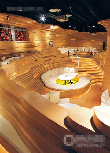 初次走進(jìn)Song Club的人多少會(huì)有些迷惑,這個(gè)充滿藝術(shù)感的空間從設(shè)計(jì)感覺上更像一個(gè)室內(nèi)的山地梯田——層層疊疊的起伏充滿動(dòng)感。