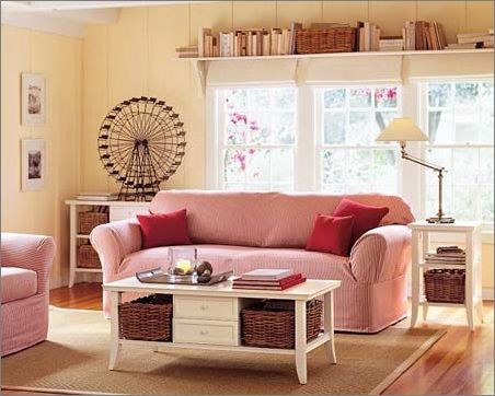 變身奧秘:沙發(fā)、靠枕、地毯 新造型閃亮登場:粉紅色的條紋沙發(fā)讓客廳顯得時(shí)尚而不失大氣,大紅的靠枕提升了冬日的溫度,暖黃色的墻面破解了略顯沉悶的冬季氣氛,乳白色的茶幾與淡褐色地毯相呼應(yīng),如冬日的太陽,視覺柔和并散發(fā)著淡淡暖意。