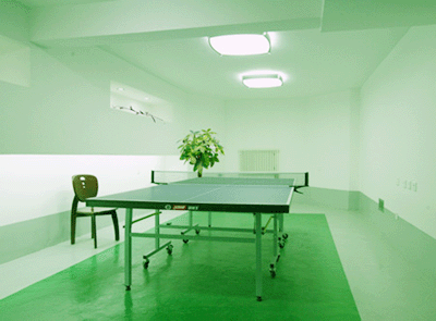 地下一層原是黑暗的管道層,采光,通風(fēng)很差,經(jīng)過藝術(shù)化的處理和設(shè)計,它變成了集儲藏,運動和視聽娛樂于一體的享用空間,看著祖孫兩個人興致勃勃地打著乒乓球,心里真是暖洋洋的!