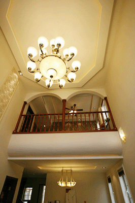 樓梯間的花瓣造型寓意'花開富貴',當(dāng)夜幕降臨,打開溫暖的柔和的燈光,無不透露著一種和諧,溫馨和吉祥!在外奔波一天的疲憊頓時全無,這就是一種家的感覺!