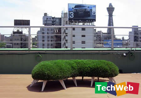 日本某公司設(shè)計(jì)了這種長(zhǎng)椅,放在公園綠地會(huì)非常有效果,椅面是新鮮的草坪,坐下去:純天然的感覺(jué)。