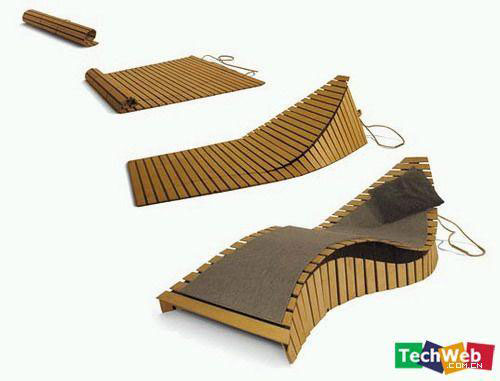 這沙發(fā)絕對(duì)現(xiàn)代??烧郫B的竹片沙發(fā),平時(shí)可以當(dāng)作床墊使用,拿到地上按照?qǐng)D中所示折疊,就變成了一張超舒服的沙發(fā)。