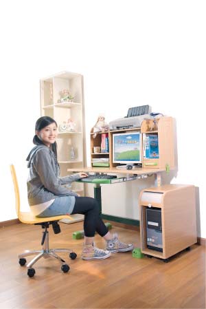 名家具展展出的“奪標(biāo)”、“愛王”品牌家具的升降電腦桌,便是一款頗受歡迎的新品。這款奪標(biāo)安全手搖或提拉升降計(jì)算機(jī)桌,配備有文具收納功能之鍵盤架、電線集線槽、四個桌腳微調(diào)高度等功能;而多功能書架則可在3秒內(nèi)變身計(jì)算機(jī)架,還有可上下調(diào)整的層板、左右微調(diào)的隔書板、旋轉(zhuǎn)的文具盒、活動的讀書板、防傾倒的固定夾、多片CD架、高明流護(hù)眼燈具等不一而足,條理清晰而便捷使用,考慮地?zé)o微不至卻適合孩子的生理機(jī)能,不失為孩子們學(xué)習(xí)的一個好平臺。