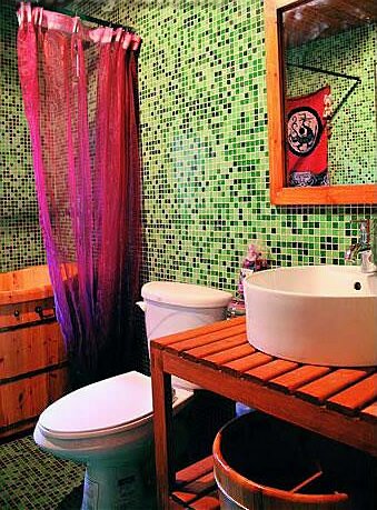 橘色系的瓷磚散發(fā)溫暖柔和,平衡了浴室色彩,整個(gè)色彩環(huán)境讓置身沐浴的人體會(huì)溫暖中的一絲舒爽。
