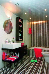 一般來說,面積較小的浴室,安裝一盞頂燈(圖1)作為普通照明就可以了,而面積較大的浴室,可以采用頂燈加壁燈的組合照明方式(圖2)。在衛(wèi)生間的燈光設(shè)計(jì)上,輔助照明是非常重要的,要格外注意。比如在墻上安裝壁燈時(shí),要將燈安裝在與窗垂直的墻面上,以免在窗上反映出陰影;在安裝頂燈時(shí)要注意避免將它安裝在浴缸的上面,浴室的洗臉玻璃鏡上方可以裝鏡前燈,鏡前燈最好選用可調(diào)投光角度并且發(fā)射光線柔和的款式,避免由于光照不當(dāng)造成的陰影或者帶來強(qiáng)烈的眩光?;蛟S只是一個(gè)燈光的改變,就能讓人忽視了冬日的寒冷,專心享受放松和愉悅的感覺。