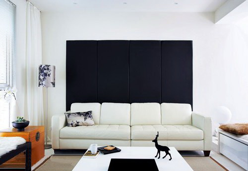 一條簡單的黑色長條色塊增加了角落的深 度,本來容易被忽視的角落反而成為了居室里的亮點(diǎn)。其它配飾的選擇除了顏色非黑即白之外,最 好選擇不同的材質(zhì)和質(zhì)地,這樣就會有既豐富又單純的效果。
