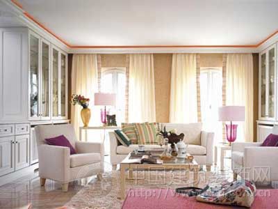 利用窗簾本身的垂墜線條形成自然的花形褶皺效果,突出圓弧窗本身的造型。亦可采用豎向手拉褶皺式的設計來掩蓋窗戶本身的圓弧造型。