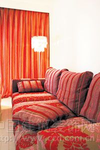 客廳中,大徑深、舒適型沙發(fā)本來就很搶人眼球,加上帶有灰調(diào)的紅作為底色,配以大朵紅色團(tuán)花面料,在燈光的照射下,整個客廳給人以驚艷的感覺。如果,夫妻二人喜歡艷麗環(huán)境,可以采用這種方式 裝飾客廳。沒事的時候躺在沙發(fā)上,聽音樂、看書、和愛人聊天,再來杯紅酒,實在是件愜意的事情。