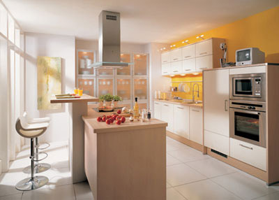 所謂“通透”,是指廚房與餐廳合并。這種情況就餐時上菜快速簡便,能充分利用空間,較為實用。只是需要注意不能使廚房的烹飪活動受到干擾,也不能破壞進(jìn)餐的氣氛。最好要盡量使廚房和餐廳有自然的隔斷或使餐桌布置遠(yuǎn)離廚具,餐桌上方的照明燈具應(yīng)該突出一種隱形的分隔感。