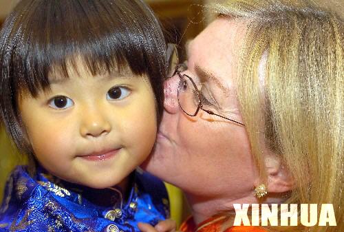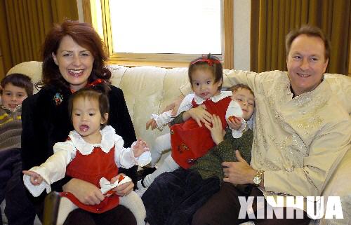 資料圖片:2006年3月11日,一對美國夫婦帶著自己的幾個孩子和收養(yǎng)的一對中國雙胞胎姐妹參加在中國駐洛杉磯總領事館舉行的聚會,這對夫婦是在中國深圳收養(yǎng)雙胞胎姐妹的。新華社記者戚恒 攝