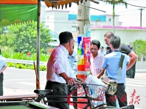 昨天,8輛警車開到立滔制衣廠門口,杏龍路前往龍?zhí)洞宓牡缆匪闹苡擅窬咽睾?,?shù)十名刑警、民警押下4個疑犯,直接走到游名勝當(dāng)晚打牌被殺的士多。民警們押著一身穿粉紅色短袖上衣的男子,正站立在士多的一根電線桿旁指認(rèn),這里距離游名勝打牌時的麻將桌不到半米。幾分鐘后,刑警把右手搭在該男子的肩上,一起走上警車。不久,4疑犯被4輛警車分別帶走。在指認(rèn)現(xiàn)場,警方并未接受采訪。