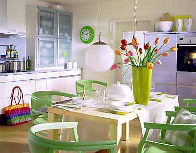吊燈的組合形式多樣,單盞、三個(gè)一排、多個(gè)小燈嵌在玻璃板上的,還有由多個(gè)燈球排列而成的,體積大小各異。在選擇餐廳吊燈時(shí),就要根據(jù)餐桌的尺寸來確定燈具的大小。餐桌較長,宜選用一排由多個(gè)小吊燈組成的款式,而且每個(gè)小燈分別由開關(guān)控制,這樣就可以依用餐需要開啟相應(yīng)的吊燈盞數(shù)了。如果是折疊式餐桌,那就可以選擇可伸縮的不銹鋼圓形吊燈來隨時(shí)依需要擴(kuò)大光照空間。而單盞吊燈或風(fēng)鈴形的吊燈就比較適合與方形餐桌或圓形餐桌搭配了。