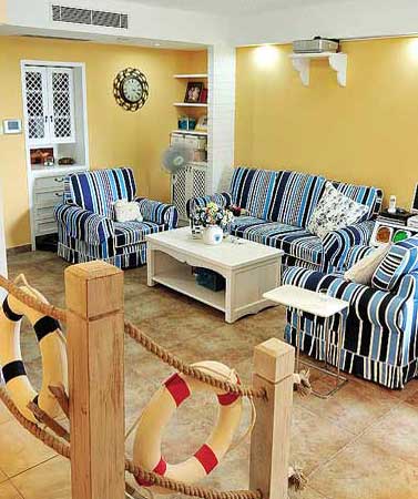 一簾幽夢(mèng):自然浪漫的蔚藍(lán)色,把天空的寧靜與開闊帶到家中,通過明度上的提升,放大了居室的面積。蔚藍(lán)色與白色過渡十分流暢,正如白云和藍(lán)天的感覺,而暖色調(diào)的家具和布藝則為空間帶來朝氣蓬勃的感覺。