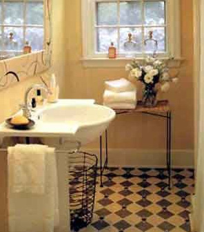 浴室中最理想的色調(diào)是粉色系,例如:粉紅、淡綠、淡藍(lán)及桃紅色等。其次則是奶油色系,或是一些中性色,如:黑色及白色。裝飾物及毛巾等配件則可選擇強烈的對比色系。