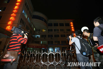 5月10日,媒體記者在成都市傳染病醫(yī)院外采訪。當(dāng)日下午,衛(wèi)生部接到四川省衛(wèi)生廳報告,四川省人民醫(yī)院發(fā)現(xiàn)1例發(fā)熱病例,根據(jù)臨床表現(xiàn)和實驗室檢驗結(jié)果,初步診斷為甲型H1N1流感疑似病例。目前,患者已轉(zhuǎn)送成都市傳染病醫(yī)院隔離治療,其就診過程中的密切接觸者也已采取醫(yī)學(xué)觀察措施。新華社記者陳建力攝
