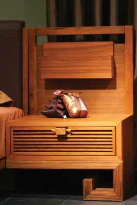 取少量水灑在家具表面,若水分未被吸收而呈珠狀分布的為柚木,吸水的則是黑芯木蓮。
