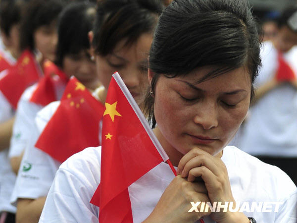 2009年5月10日,一名群眾在北川老縣城悼念地震遇難者。