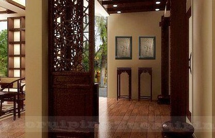由于客廳具有多功能性且面積大, 通常在設計功能區(qū)域劃分時采用隔斷形式。通常采用的形式有 [1]木柜隔斷,[2]藝術屏風隔斷,[3]花格式隔斷,[4]地臺式隔斷, [5]天花造型分格,[6]利用天花燈光照明強弱分格等。