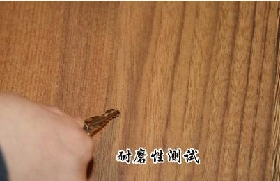 選擇強(qiáng)化復(fù)合地板,耐磨性是關(guān)鍵。這款地板含有三氧化二鋁耐磨層,耐磨轉(zhuǎn)數(shù)在9000以上。測(cè)評(píng)員用利器在地板表面上用力的來(lái)回刮劃多次后,發(fā)現(xiàn)地板上沒(méi)有一點(diǎn)劃痕,可見(jiàn)其耐磨性相當(dāng)好,完全可以經(jīng)受日常使用的考驗(yàn)。