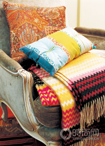 靠包和毛毯可以有很多種不同的搭配,天空藍與湖水綠,條紋與印花相互混搭都是不錯的選擇。