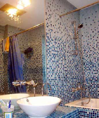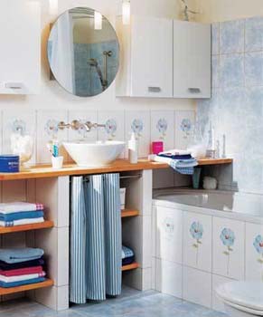 在浴缸周圍的墻壁上打一個七八厘米深的凹洞,再鋪上與墻壁相同的瓷磚,此洞可用來放洗浴用品等東西。這樣既擴(kuò)大了使用空間,使用起來也方便、自如,衛(wèi)生間看上去也更井然有序。