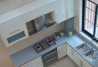 廚房是個潮濕易積水的場所,所以地面、操作臺面的材料應不漏水、滲水,墻面、頂棚材料應耐水、可用水擦洗。