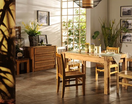 餐廳地面以各種瓷磚和復(fù)合木地板為首選材料,它們都因?yàn)槟湍?、耐臟、易于清洗而受到普遍歡迎。但復(fù)合木地板要注意環(huán)保要求是否合格,也就是單位甲醛釋放量是否達(dá)標(biāo)。瓷磚和復(fù)合木地板可選擇的款式非常多,可適用于各種不同種類的裝飾風(fēng)格,價(jià)格上也有多種選擇。如果選擇石材地面則使空間高貴典雅,但要注意石材的放射性,為圖豪華而將整個(gè)家都用石材包起來,卻又因放射性污染太重而將石材全部敲掉這樣就太不值得了。