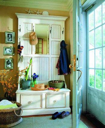 這種式樣的玄關(guān)柜漂亮而實(shí)用,下面的柜體放置脫換的鞋子,平臺(tái)部分正好可以坐在上面方便穿脫,上面的箱板釘幾個(gè)掛鉤,就能懸掛出門(mén)的行頭、帽子、書(shū)包一類(lèi)的東西了,是早晨快速整理妝容的好幫手。