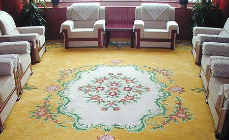 手工地毯可按產地來分,分為波斯地毯、歐式法式地毯、藏式地毯、京式傳統(tǒng)地毯等。波斯地毯多以羊毛配以桑蠶絲織成,圖案顏色繁密,具有濃郁的西亞風格,整體氣質雍容華貴。歐式法式地毯同樣采用純羊毛配以桑蠶絲織成,圖案華麗浪漫,具有西方油畫的效果,具有濃郁的歐洲風格。藏式地毯的圖案均由桑蠶絲織成,顏色以米色為主,加有少量金、粉、紅色,圖案簡潔明快,清新雅致,格調簡約中透出神秘。京式傳統(tǒng)地毯富含中國文化精華,具有濃郁的民族色彩。