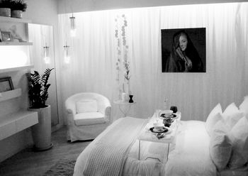 以白色為主色調(diào),希望客人能在一看見的瞬間就想走進(jìn)來。由于是臥室,所以希望通過燈光來營造一個(gè)放松的環(huán)境,透過特別的燈光、香味和舒緩的音樂,創(chuàng)造一個(gè)最舒適的環(huán)境。