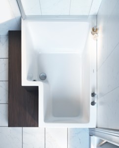 大大的浴缸滿溢著主人的幸福,但“大”并不總是討巧,衛(wèi)浴空間常常因為面積較小而無法盛放下一個方方正正的標準浴缸,勉強放下的話,要么空間失衡,要么局促狹窄,在要或不要浴缸的選擇中常常叫人為難。六角形的浴缸就是為這些家庭不好應付的墻面直角而設計的。造型上,六角形很能打破房間的分隔感,使房間的線條更為柔和錯落。卡德維的TwinPool浴缸,內部為橢圓形結構,緊湊的外形和六角形的設計適合在各種位置擺放,雖然看上去小巧緊湊,但是1米的寬度和47厘米的深度同樣確保了舒適的泡浴享受。如果擔心沒有額外放置沐浴用品空間的話,建議在浴缸周圍的墻壁上開一個七八厘米深的凹槽,再鋪上與墻壁相同的瓷磚,就可以隨意擺放東西了。最后別忘了搭配一款圖案清爽的浴簾,讓衛(wèi)生間看上去更加井然有序。