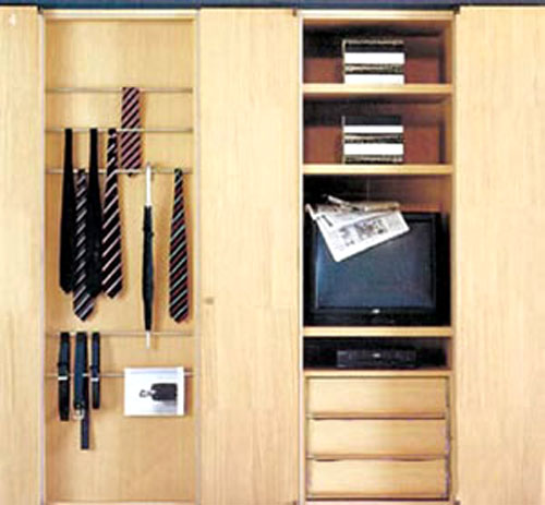 概要: 開放式衣帽間 適合對象:開放式衣帽間適合于那些希望在一個大空間內(nèi)解決所有功能的年輕人。但即便是開敞式也要有一定的私密性,以免使大空間顯得過于零亂?! ?yōu)缺點(diǎn):比較好的一種形式是利用一面空墻存放,不完全封閉。優(yōu)點(diǎn)是空氣流通好,寬敞。不過缺點(diǎn)是防塵差,因此防塵是此類衣帽間的重點(diǎn)注意事項,可采用防塵罩懸掛衣服,用盒子來疊放衣物。為便于區(qū)別,可增加一些標(biāo)志。