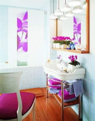 如果衛(wèi)生間較大,可將便器安排在自門口處望不到的位置,隱于矮墻、屏風(fēng)和布簾之后,當(dāng)然還要確保從任何鏡子上都看不見它。不過,在一般的住宅中,衛(wèi)生間的排污口已經(jīng)定位,不易改動。如果要改變便器的朝向,就一定要十分注意排污管的坡度,以免堵塞。
